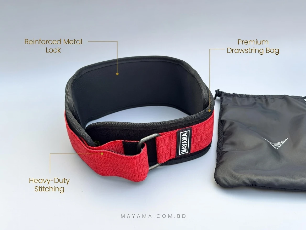 MAYAMA Double Support Gym Belt (heavy-duty nylon, 4"/6" convertible) protects the lower back of Dhaka lifters during heavy workouts. I checked its stitching and fit myself – trust its quality. It’s perfect for small home gyms and rooftops. Even in Dhaka’s humid heat, it stays firm and doesn’t slip. 01996677996.