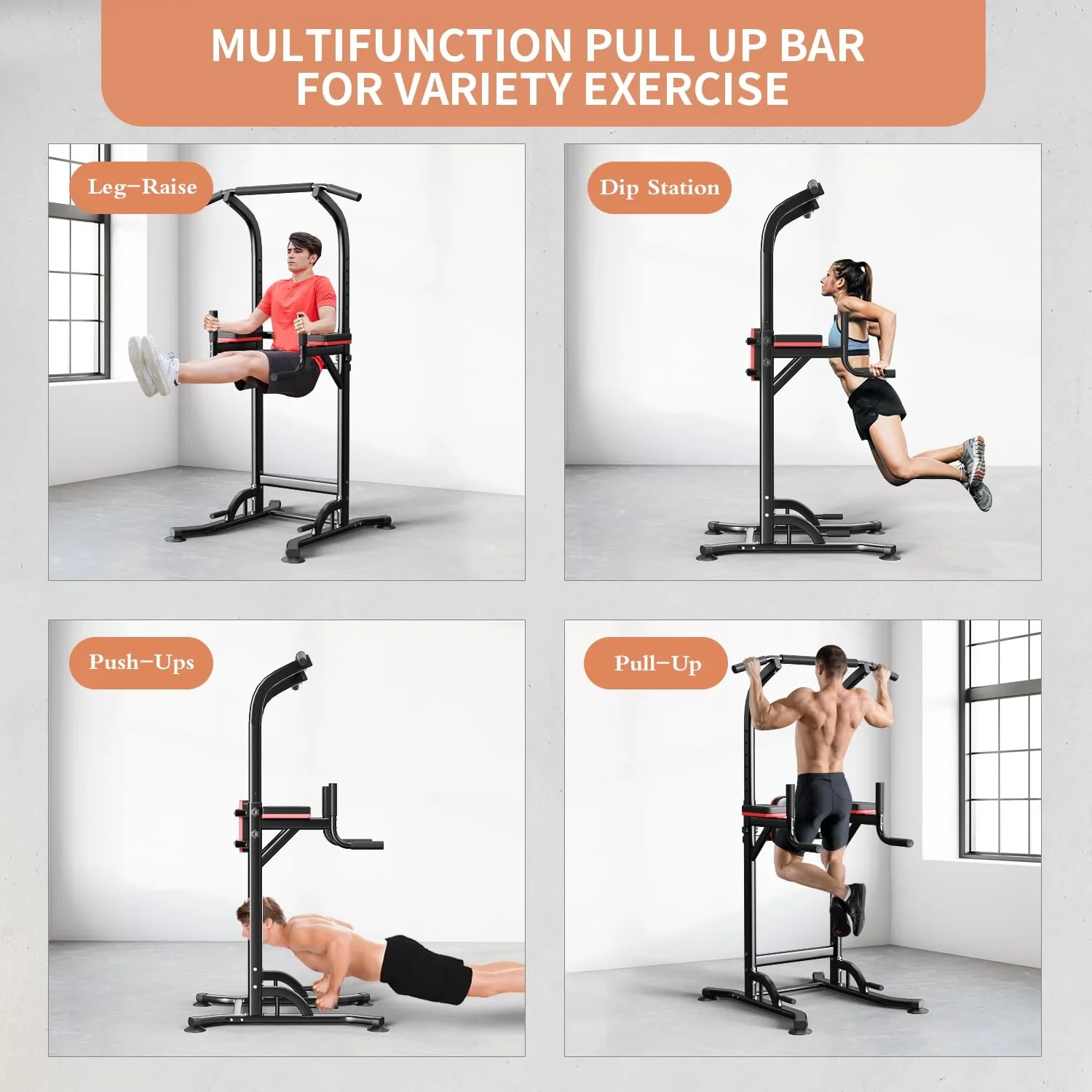 Pull Up Bar Power Tower Dip Station Height Adjustable Strength Training Equipment for Fitness Home Workout Steel