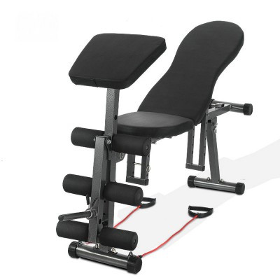Sit up dumbbell bench with leg extension and preacher curl