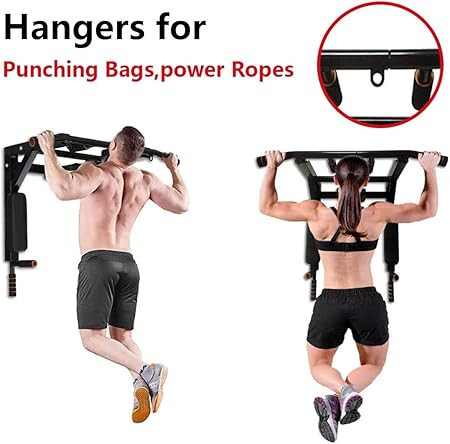 440 LBS Weight Capacity -- 38" pull up bar allowing you to grip it in the wide, parallel or narrow positions. Knurled non-slip hnadle provides comfort as you do push-ups, pull-ups, chin-ups with multiple grip positions, tricep dips, vertical knee raises, and much more.